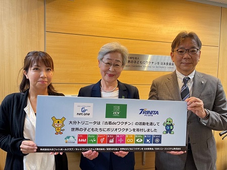ネットワンシステムズは、大分トリニータと協同で実施している「古着deワクチン」を通じて発展途上国へポリオワクチンの寄付を行い、認定NPO法人 世界の子どもにワクチンを 日本委員会から感謝状の贈呈を受けました。