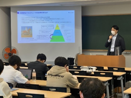 人間環境学部 金光秀和教授が担当されている「科学技術哲学講義」(15名参加)、およびゼミ「研究会B」(7名参加)にネットワンシステムズの社員が講師として登壇しました。