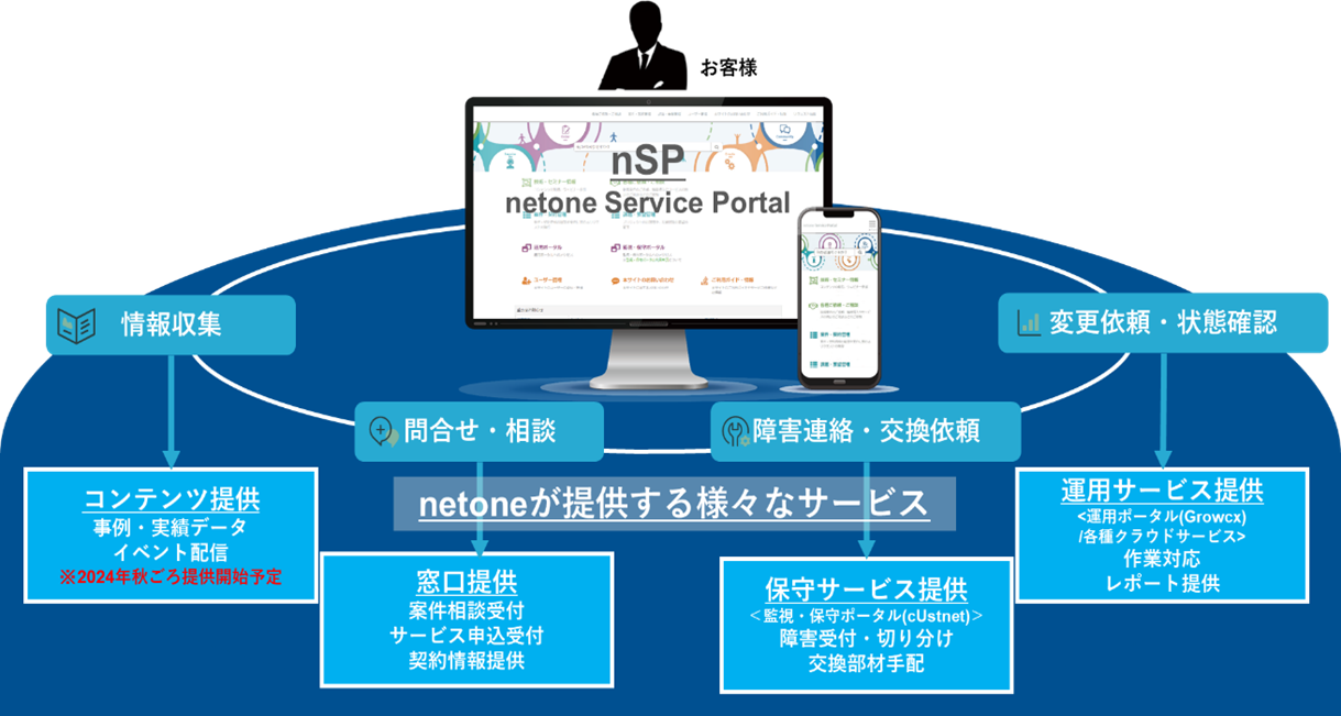 netone Service Portalとは、お客様とシームレスなつながりを実現する総合デジタルポータルサイトです。