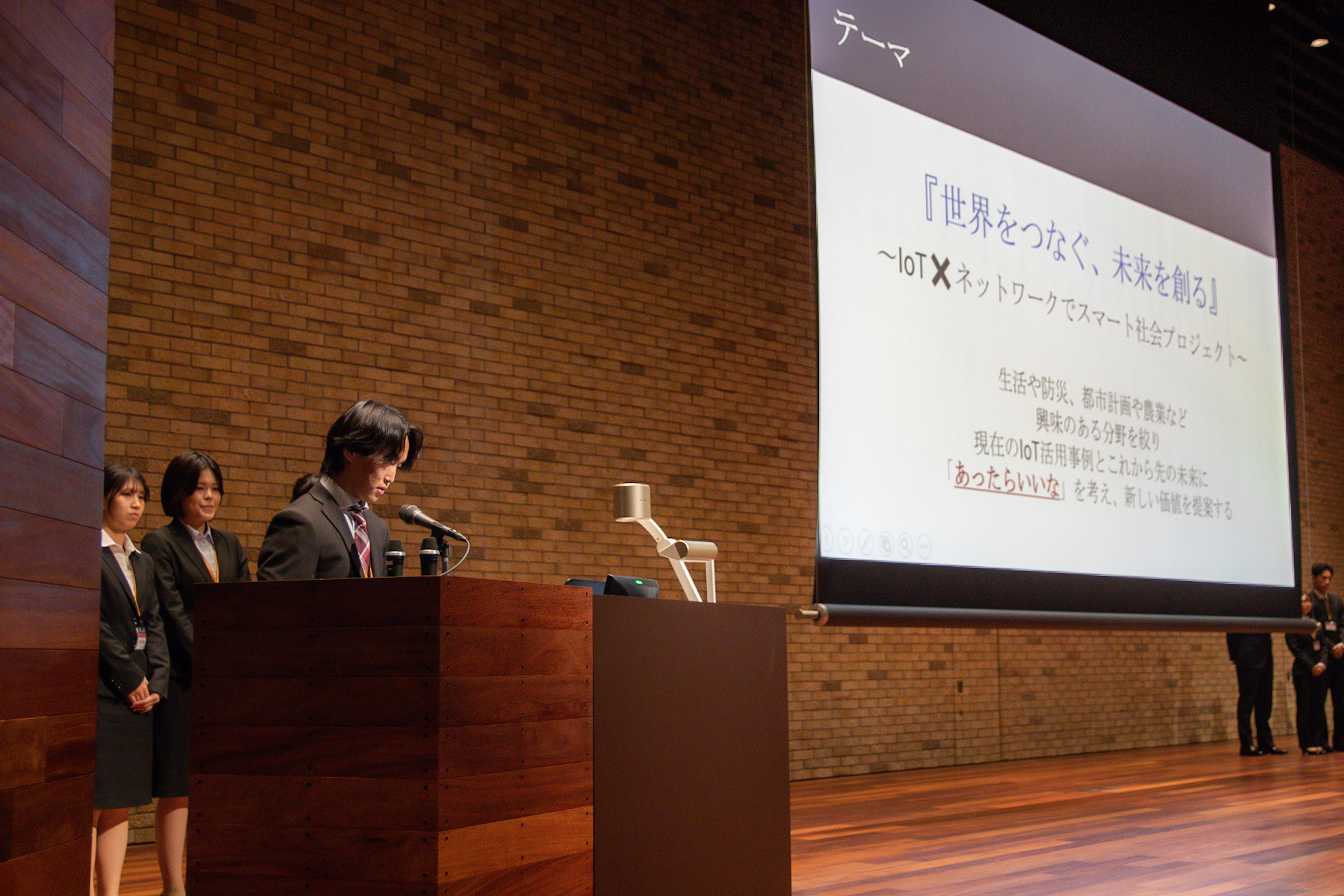 最終プレゼンテーションでは、これから先の未来に「あったらいいな」という視点を起点に、IoT技術を用いたユニークかつ実現性のある提案が発表されました。