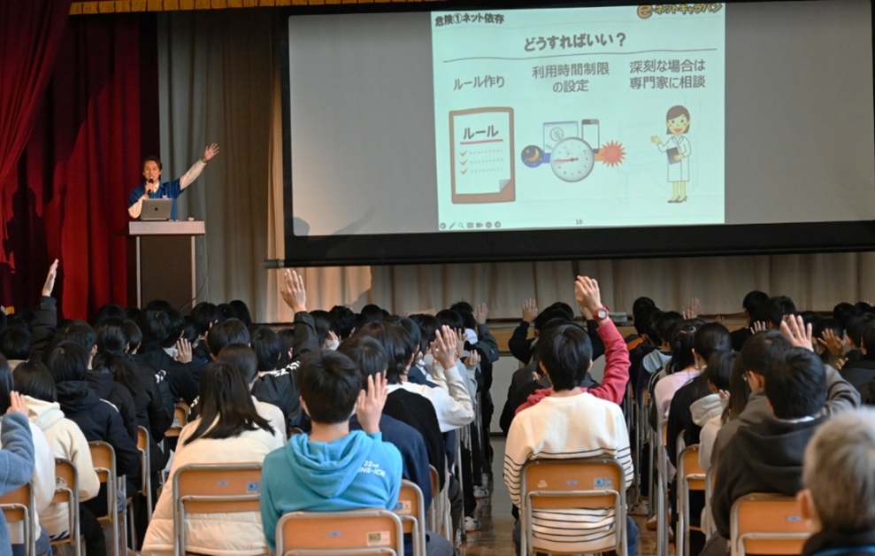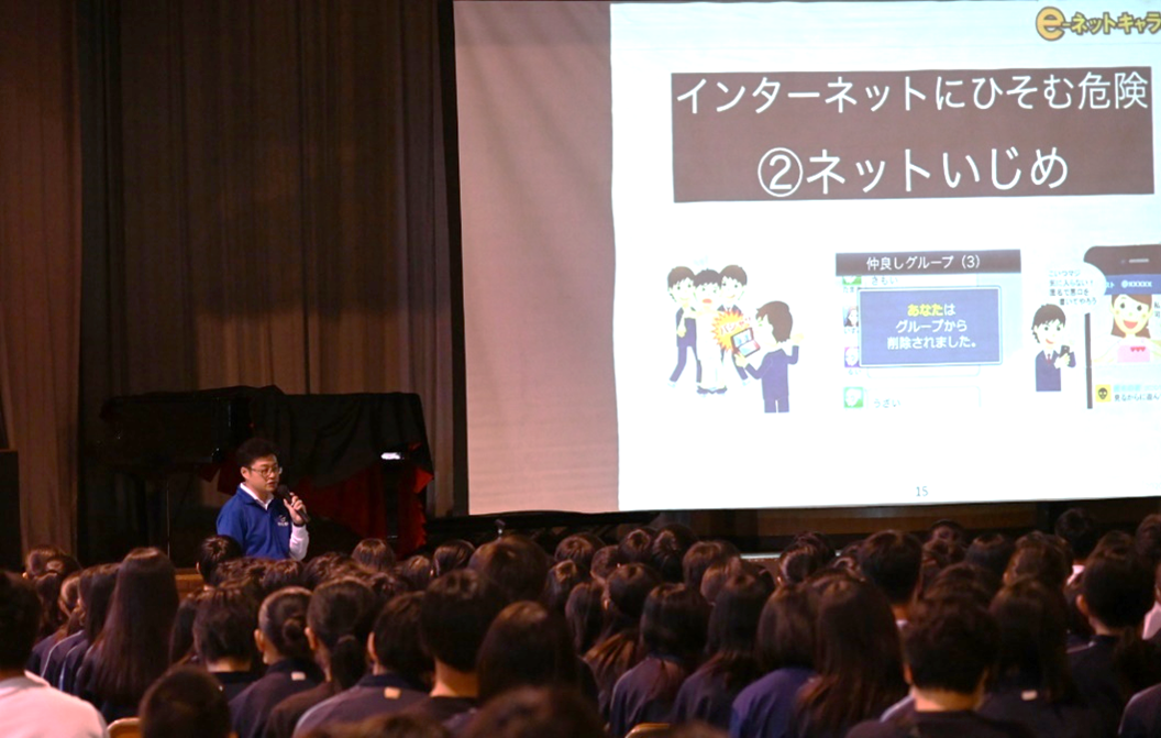 ネットワンシステムズ株式会社は、一般財団法人マルチメディア振興センターが運営する「e-ネットキャラバン」の協力団体として、複数の中学校・高等学校でITリテラシー向上のための講演を実施いたしました。