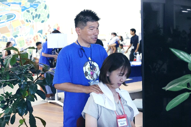 株式会社バックテック様にご協力いただき、AIによる姿勢診断を実施。また手をかざすだけで野菜が足りているかを計測できる「ベジチェック」で参加者の健康意識を高めてもらいました。社員が普段受けているマッサージも短い時間ながら体験いただきました。