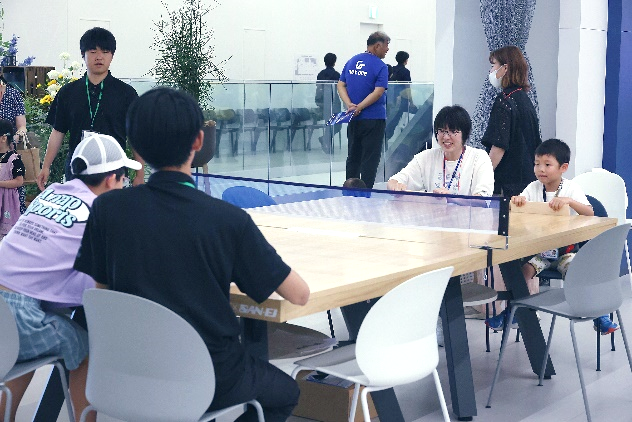 ボッチャと卓球バレー、ラダーゲッターの体験コーナーを設置。誰でも楽しめる「ユニバーサルスポーツ」について知ってもらうプログラムを実施しました。