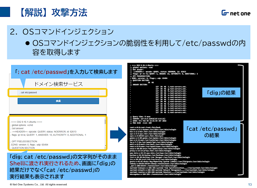 2日間の演習では,少人数に分かれた各グループに対して、ネットワンシステムズ社の専門社員の方々がきめ細かくご指導下さり、難しい内容にもついていくことができました。ふだんの授業では経験できない実践的なセキュリティ演習の機会をご提供いただき、どうもありがとうございました。