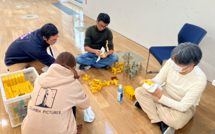 展示に使用されたプラレールをひとつひとつ丁寧に拭き上げ、仕分け・収納作業を実施し、展示室の清掃を行いました。プラレールジオラマ展示会は今年で3回目の開催で、同施設の鉄道好きサロンのメンバーを中心に制作され、開催期間3日間で延べ500名程が来場されました。