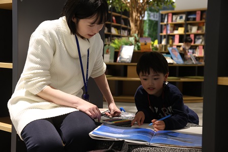 | ●家族社員証作成&名刺交換体験 | ●本を活用したワークショップ |