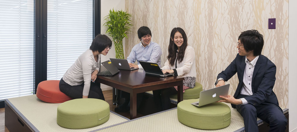 - 会議室や固定席を最小限としたオープンなオフィスで、打ち合わせや会話内容を自然に共有