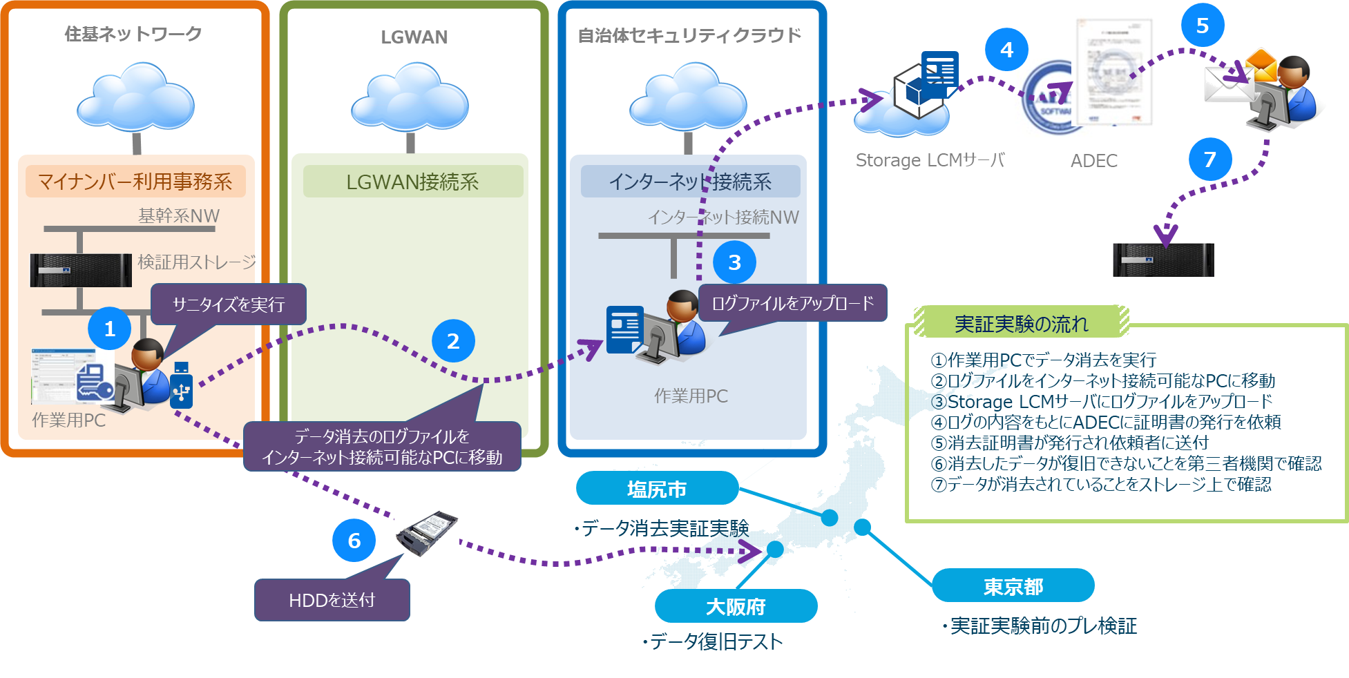 ストレージのソフトウェアデータ消去実証実験で、正常な運用を確認