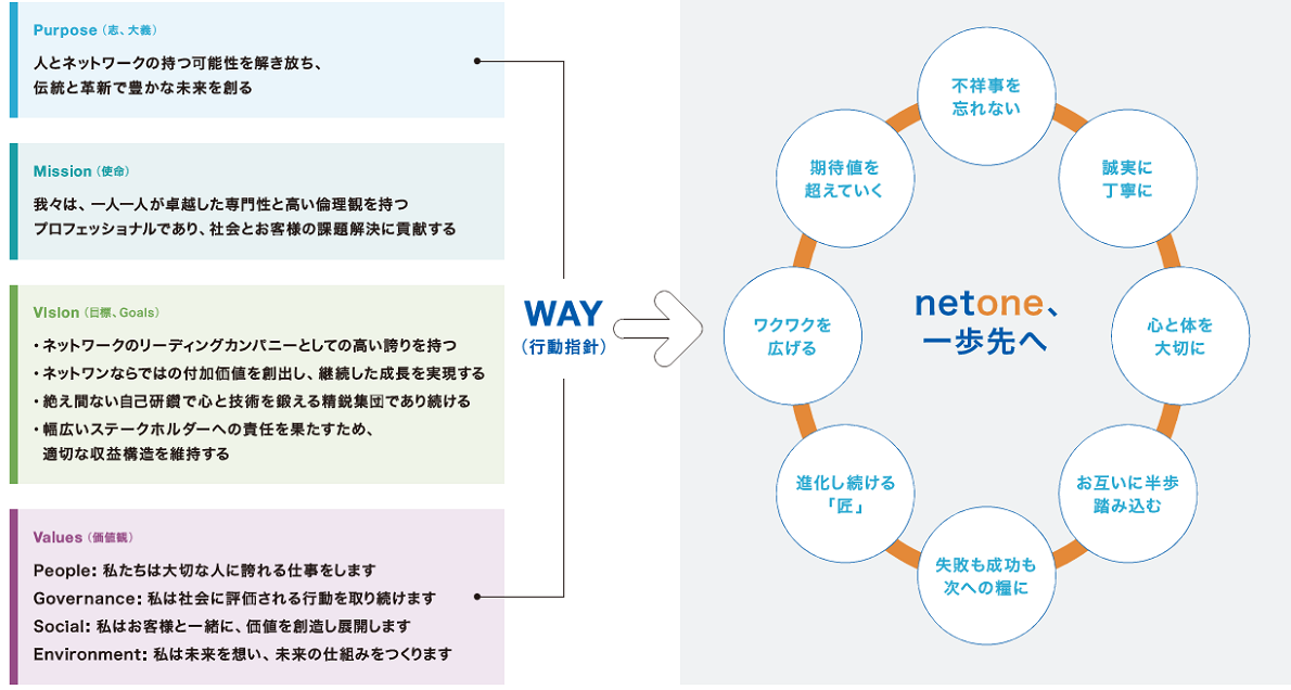 今後ネットワンシステムズは、「人とネットワークの持つ可能性を解き放ち、伝統と革新で豊かな未来を創る」を存在意義とし、ICTの利活用を通じて、社会価値と経済価値を創出するサービスを提供することで持続可能な社会への貢献と当社の持続的成長を両立していきます。