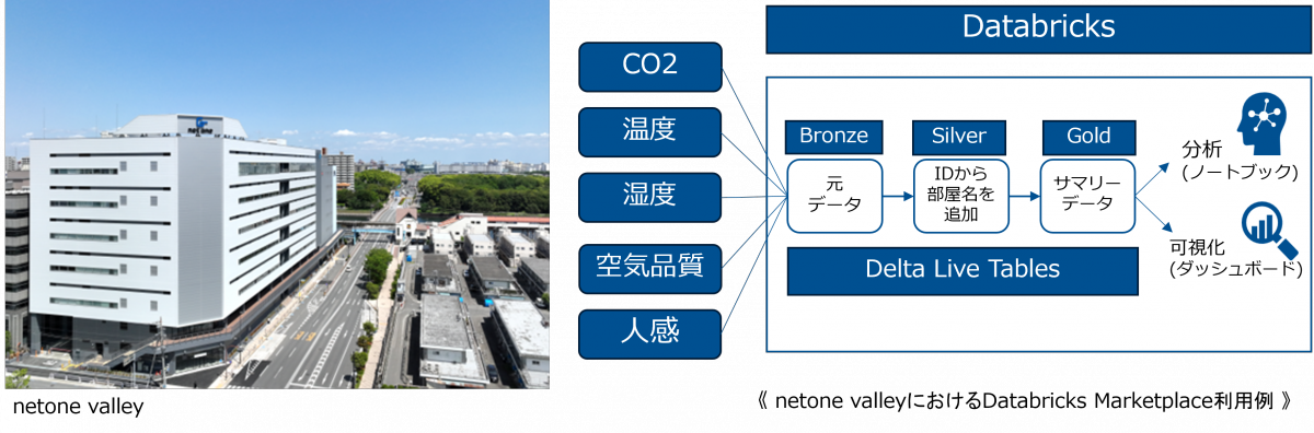 当社は今年5月に、新たなイノベーション創出の場として「イノベーションセンター netone valley」を開設しました。本施設内には、データ取得・可視化ツールが導入されており、建物内で生まれる様々なデータの取得・活用に取り組んでいます。「イノベーションを実現する機会提供」というDatabricks Marketplace開設の目的が、当社のイノベーションセンターの存在意義に合致し、この度データパートナーとして参加しました。