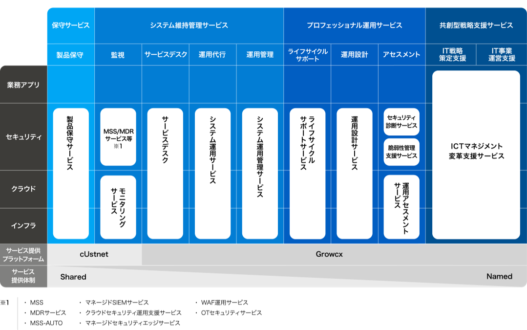 お客様の事業成長を後押しする運用高度化の実現に向け、Managed ONEで整備された各種運用サービスはサービス提供プラットフォーム「Growcx」を通じて提供します。