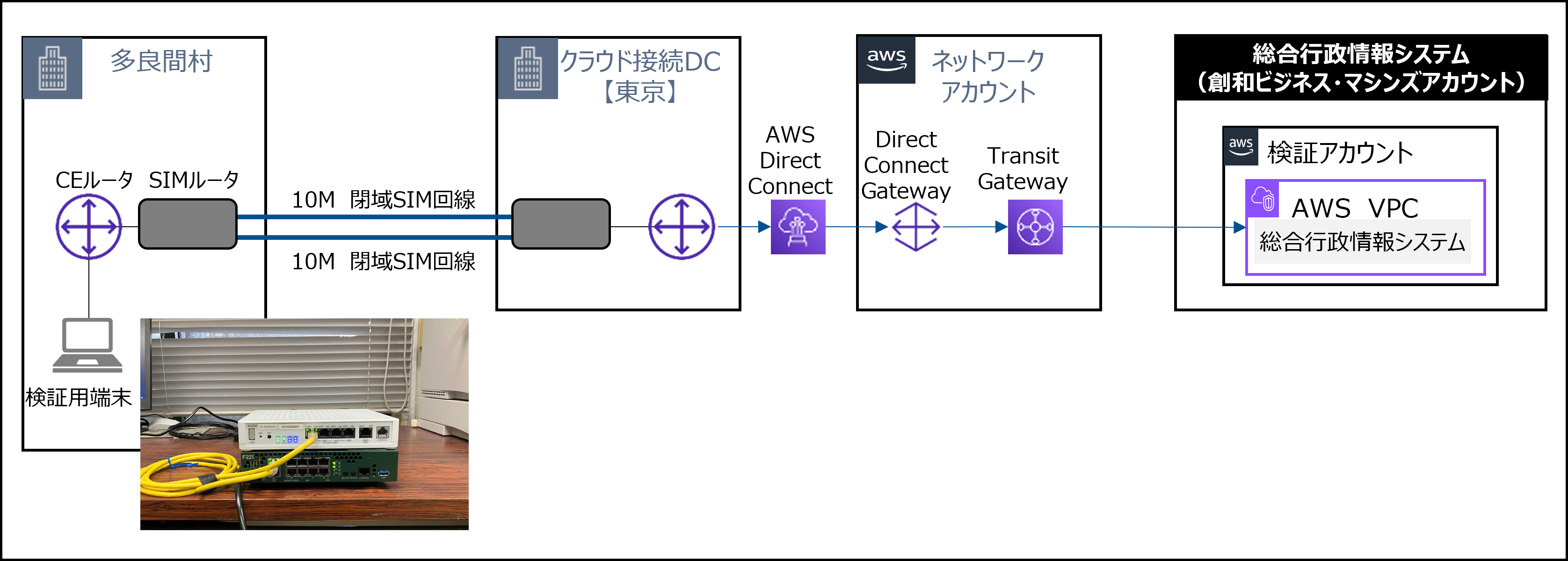 構成 :多良間村役場より閉域SIM回線を利用して疑似ガバメントクラウド環境へ接続