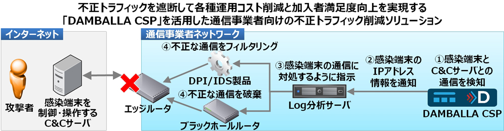 <「DAMBALLA CSP」を活用した通信事業者向けの不正トラフィック削減ソリューション>