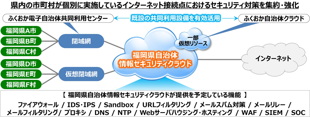 また、「福岡県自治体情報セキュリティクラウド」は、同協議会がサービス提供している「ふくおか自治体クラウド」の仮想リソースを活用し、コスト削減と効率的な運用に取り組みます。