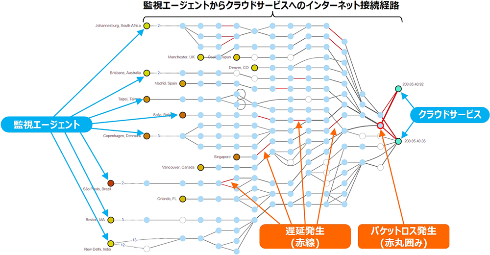 <インターネット経路と性能の可視化の様子>