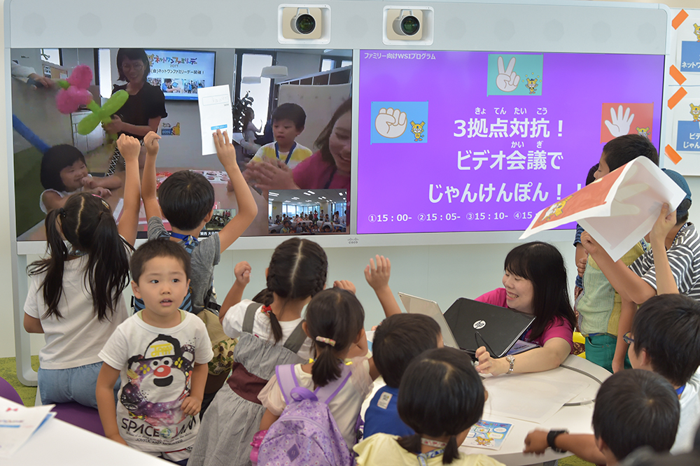 具体的には、ビデオ会議システムで複数拠点を結んだ開会挨拶、フリーアドレスの環境でICTを活用して働いている様子を体感するオフィス見学ツアー、具体的なICTツールを交えた働き方改革の説明会などを開催し、家族で楽しみながら参加していただきました。