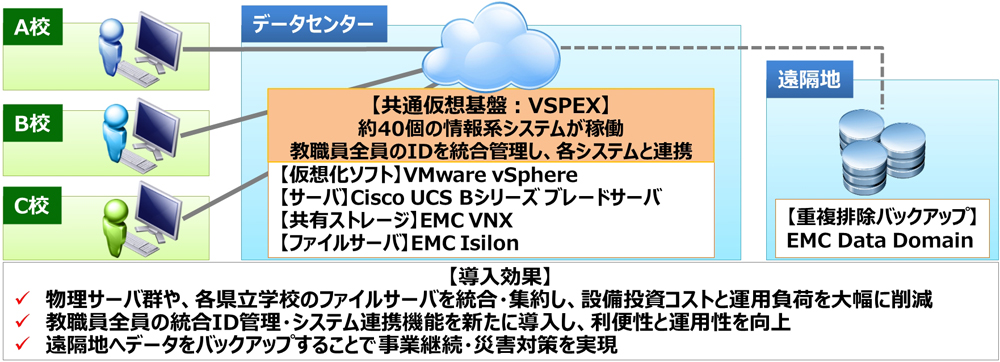岐阜県教育委員会はこれらの課題を解決するため、共通仮想基盤および遠隔地へのバックアップシステム、並びに、高画質・高音質の遠隔研修システムを構築することにしました。