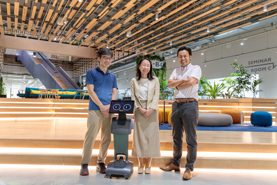 例えば、天井が高く、フロアも広大。オフィスでありながら、工場や倉庫のような空間を再現できます。また、オープンでフラット、コミュニケーションが取りやすい環境は共創に最適。実際、お客さまやパートナーさまから高く評価されています。社内の他部署とのコラボレーションも活発になりました。先日、私たちが表情分析に関するプロトタイプ開発を行い、それを展示していたところ、営業担当者が「この技術をソリューション化して提案していきたい」と声をかけてきました。現在、ソフトウェア会社とも連携して、ソリューション化に向けた取り組みを開始したところです。